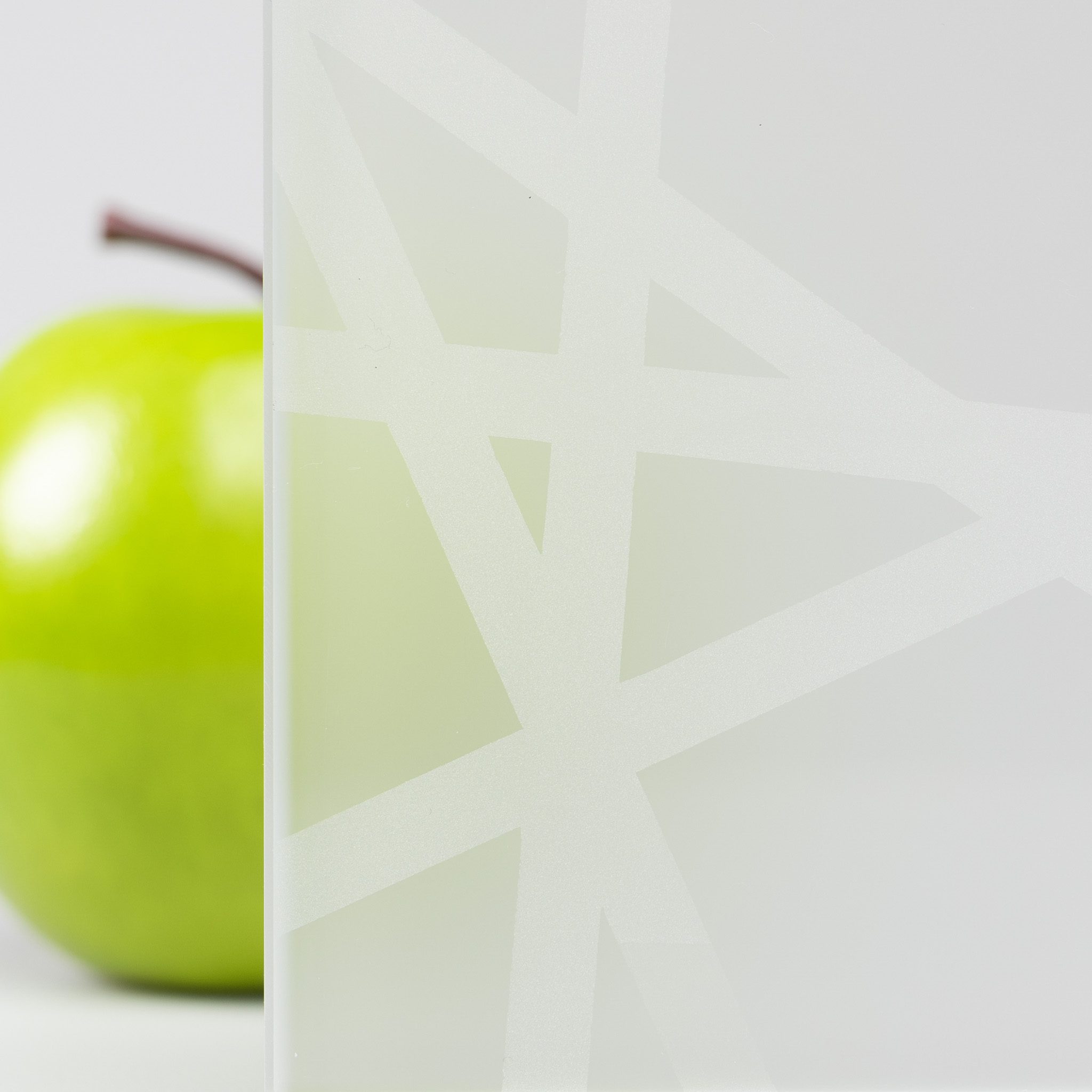 Featuring a random textured etched line pattern and colorless fabric interlayer elements, this clear glass offers medium translucency while still offering reasonable light transmittance.