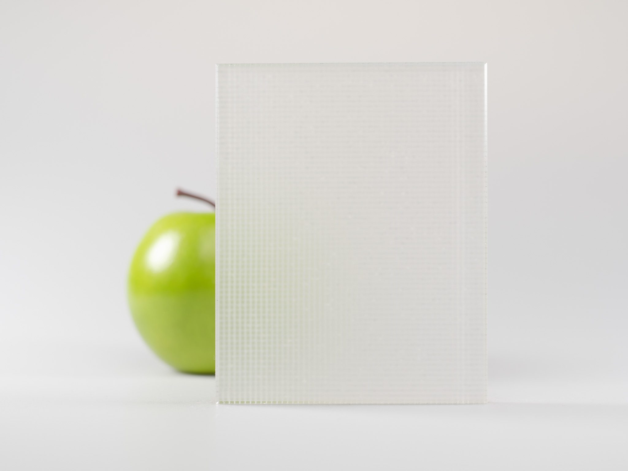 Featuring both a frosted layer as well as a gauze-like polyester fabric interlayer, this non-colored glass is highly opaque while still providing significant light transmittance. As a double-sided glass, this product is ideal for partition walls and doors where natural lighting is important but privacy or see-through viewability is key.