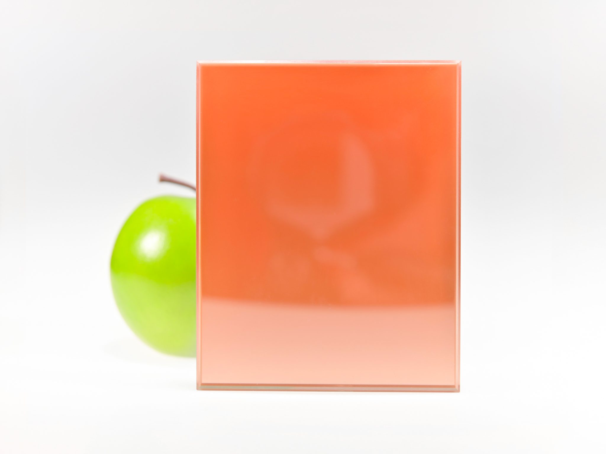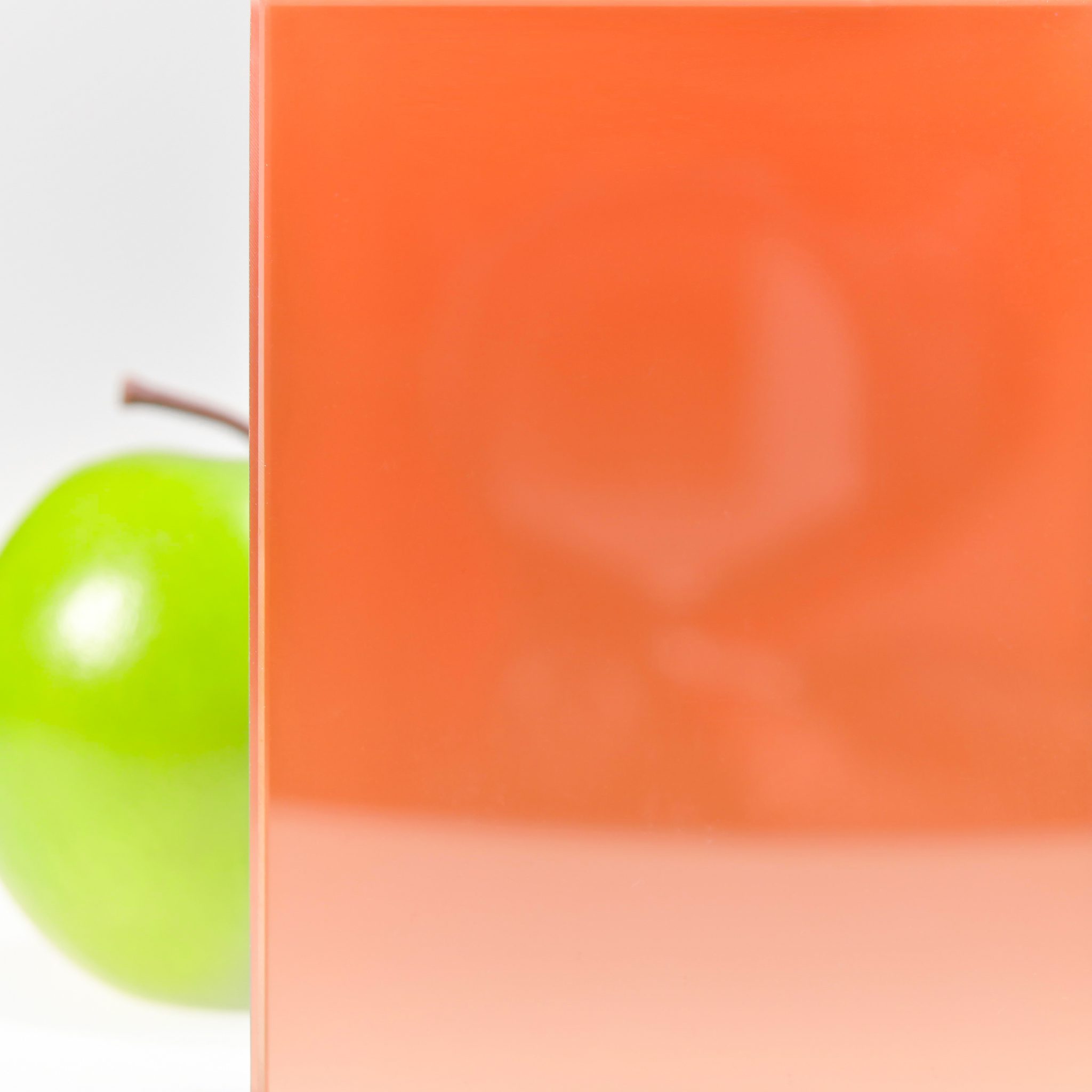 One of Archetype’s most affordable colored mirror options, this fully opaque decorative mirror features a custom colored orange material in combination with a standard mirror material.