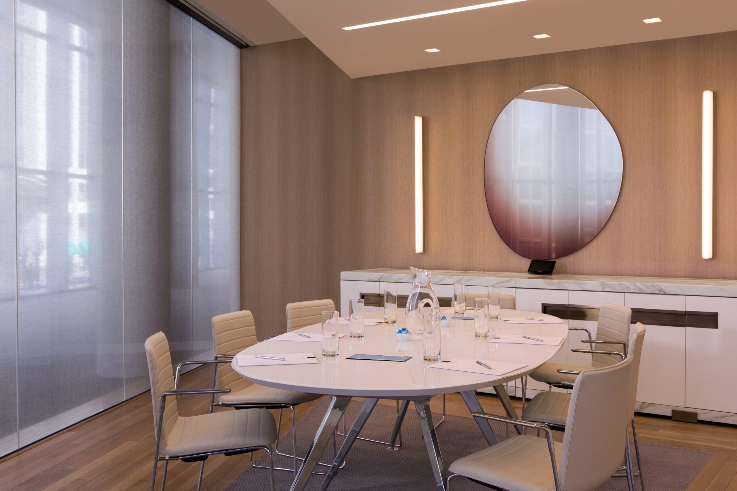 Conference room walls at the Conrad in Washington, D.C. let the light in while keeping the distractions muted.