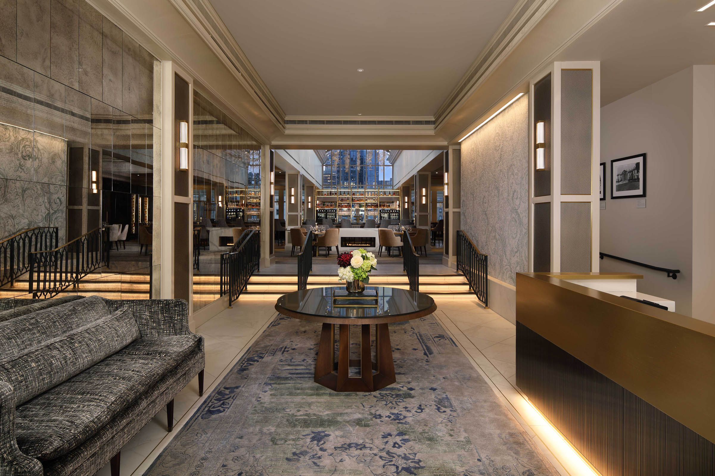 Archetype created large, laminated antique mirror panels for the main entryway, a vintage finish fitting for the historic landmark.