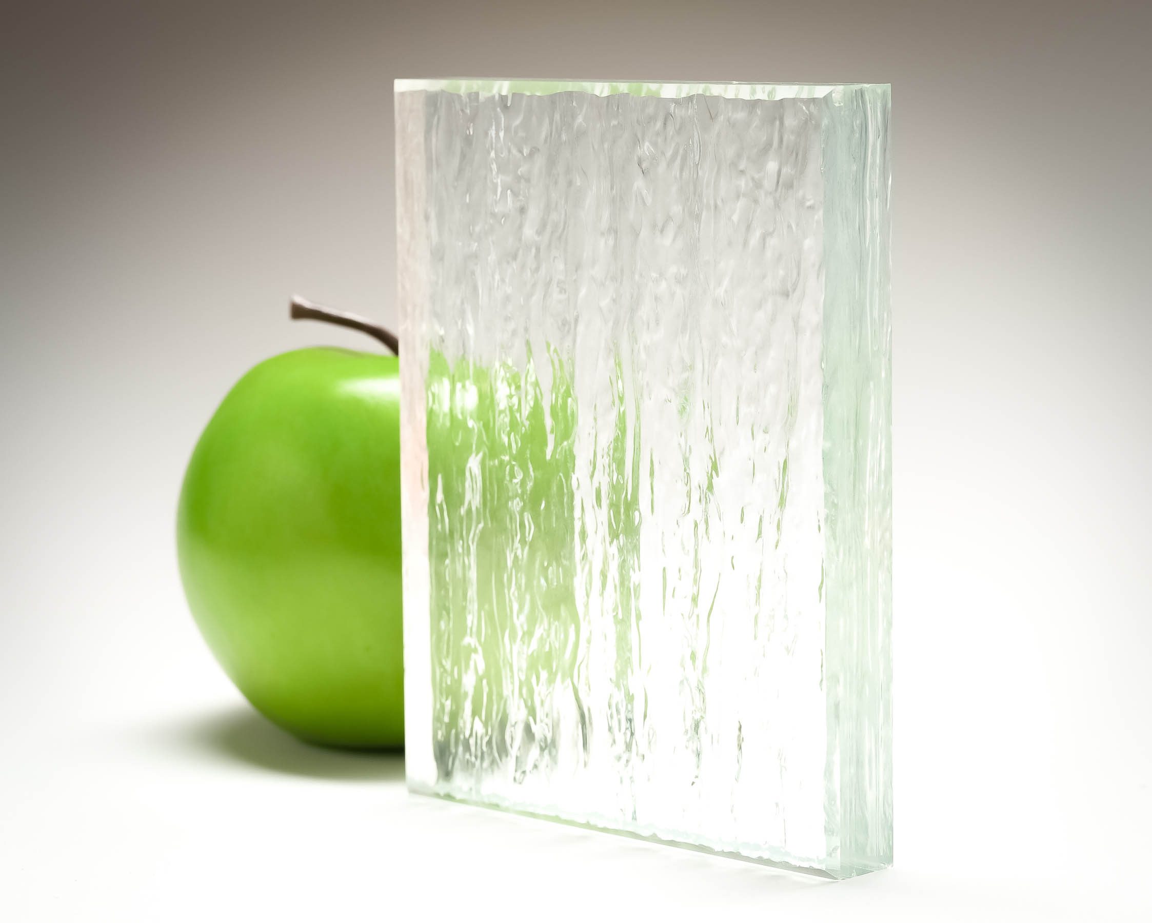 Archetype crafted triple-layer laminated glass with texture on both sides for this partition window that mutes views from space-to-space, while allowing natural light to flow freely.